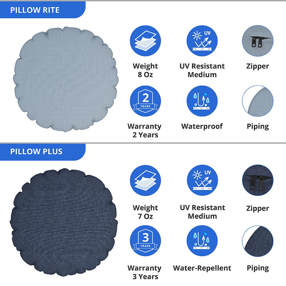 Our outdoor throw pillows are available in fully custom sizes to suit your specific needs. Use our detailed measuring guide to ensure precise sizing, with a fitting leeway of 0" to -1" for optimal comfort and adaptability. These pillows come in a diverse palette of colours, enhancing their visual appeal. Additionally, our round decorative throw pillows are equipped with zippers for easy usage and piped edges to boost durability and maintain their pristine appearance. Personalize your pillows with a design, logo, or text for a truly unique item, perfect whether for showcasing personal memories or as a distinctive marketing solution.