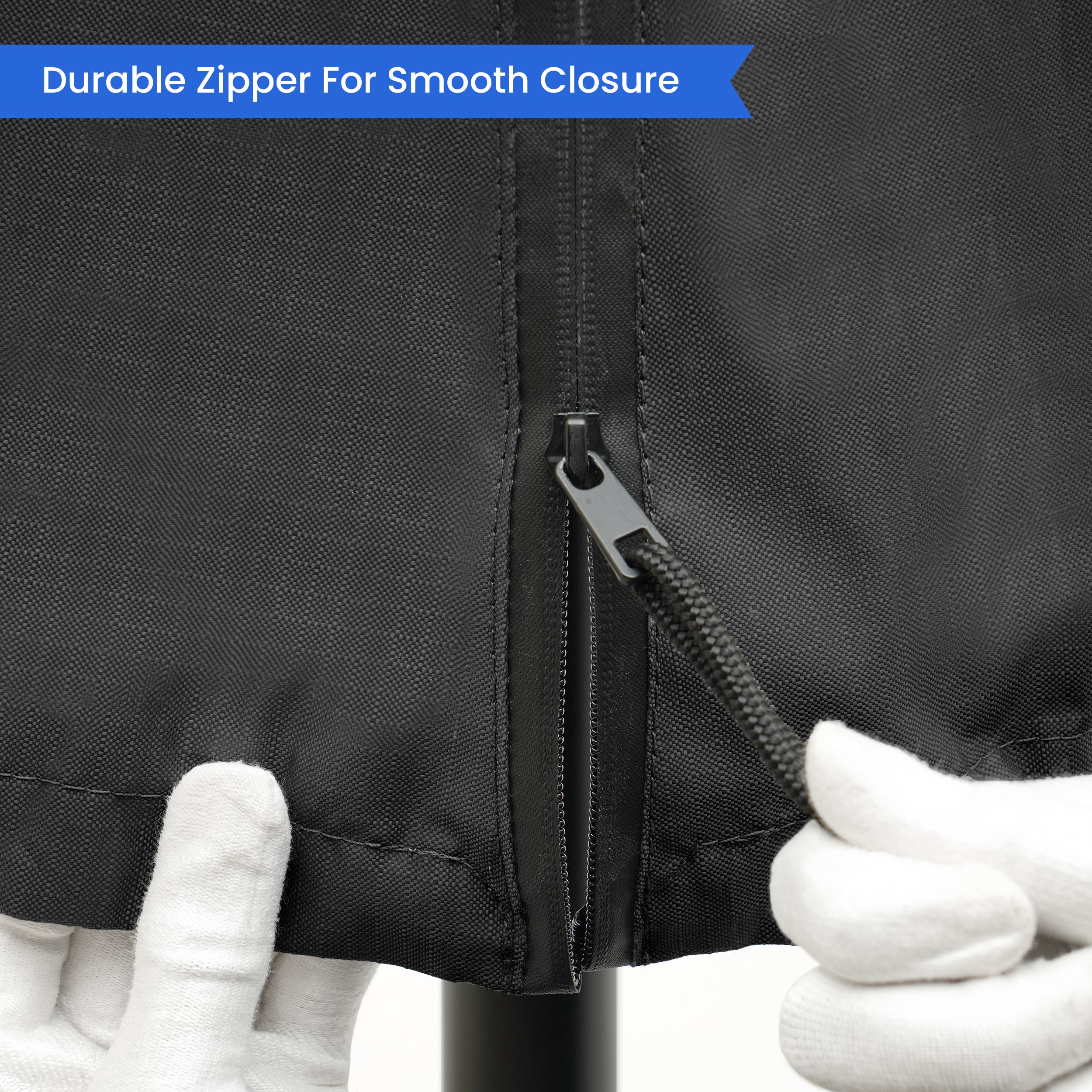 My old cover had a plastic rod attached to zipper so I could flip cover over the top of the unbrrell