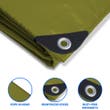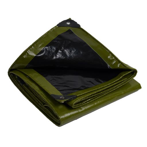 Built with 5 oz thickness and 10 mil density, this camping tarp excels in performance. The green/black design optimizes UV protection and heat management. Beyond this size, multiple sizes to suit your diverse needs are also available. Strategic rust-resistant grommets placement at 18" distances, ensure reliable setup. As a tarp for truck bed, it's ideal for construction sites and storage needs.