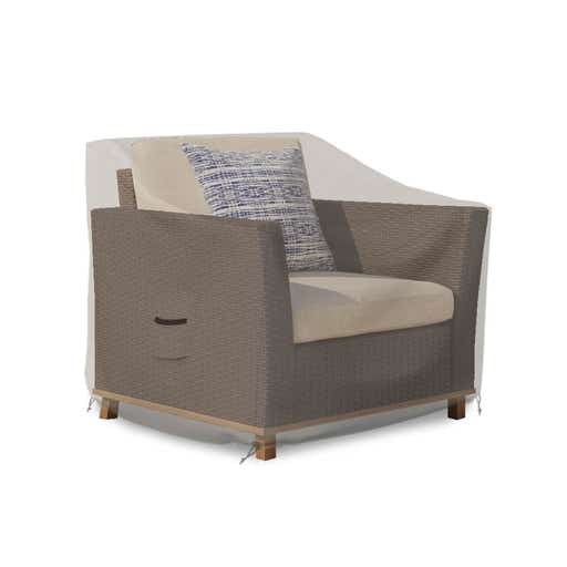 This chair cover offers excellent protection against dust, rain, and UV rays. The durable fabric ensures longevity, while the lightweight design allows for easy handling. Its tailored fit enhances the chair's appearance, and the drawstring tie-down keeps it secure in breezy conditions. A practical choice for outdoor furniture.