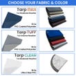 Our custom vinyl tarps come in four robust materials tailored for diverse environments. Tarp Max is a lightweight choice at 13 oz, while Tarp Tuff offers more substantial heavy-duty protection at 18 oz, with warranties of 3 years and 5 years respectively. For clear visibility, Tarp Clear boasts a transparent, 20 Mil thick, 48 PHR PVC known for its durability. Additionally, the Tarp Canvas is a premium, weather-resistant selection at 18 oz, 28 Mil thick, perfect for moderate weather conditions.