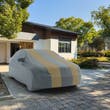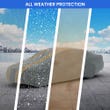 This sedan car cover offers a snug fit with all-around coverage. The waterproof, UV-resistant fabric shields against sun, rain, and dust. Backed by Coversandall Assurance Plus policy, I trust its durability for long-term use. Straps and elastic hems keep it secure even in strong winds.