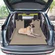 Our dog car trunk cover is made from 600 denier, 100% solution-dyed polyester fabric with a PU coating on one side, making it both lightweight and water-repellent. Weighing only 8 oz, it offers excellent resistance to tears, abrasions, and UV rays, ensuring long-lasting performance. The hollow silicon conjugated fibre filling provides added cushioning for comfort, making car rides more enjoyable for your dog. Its water resistance helps prevent moisture damage and the growth of mould and bacteria. Whether you're travelling to the cabin or on a road trip, this dog car trunk cover is perfect for keeping your vehicle clean, even in the event of an accident.