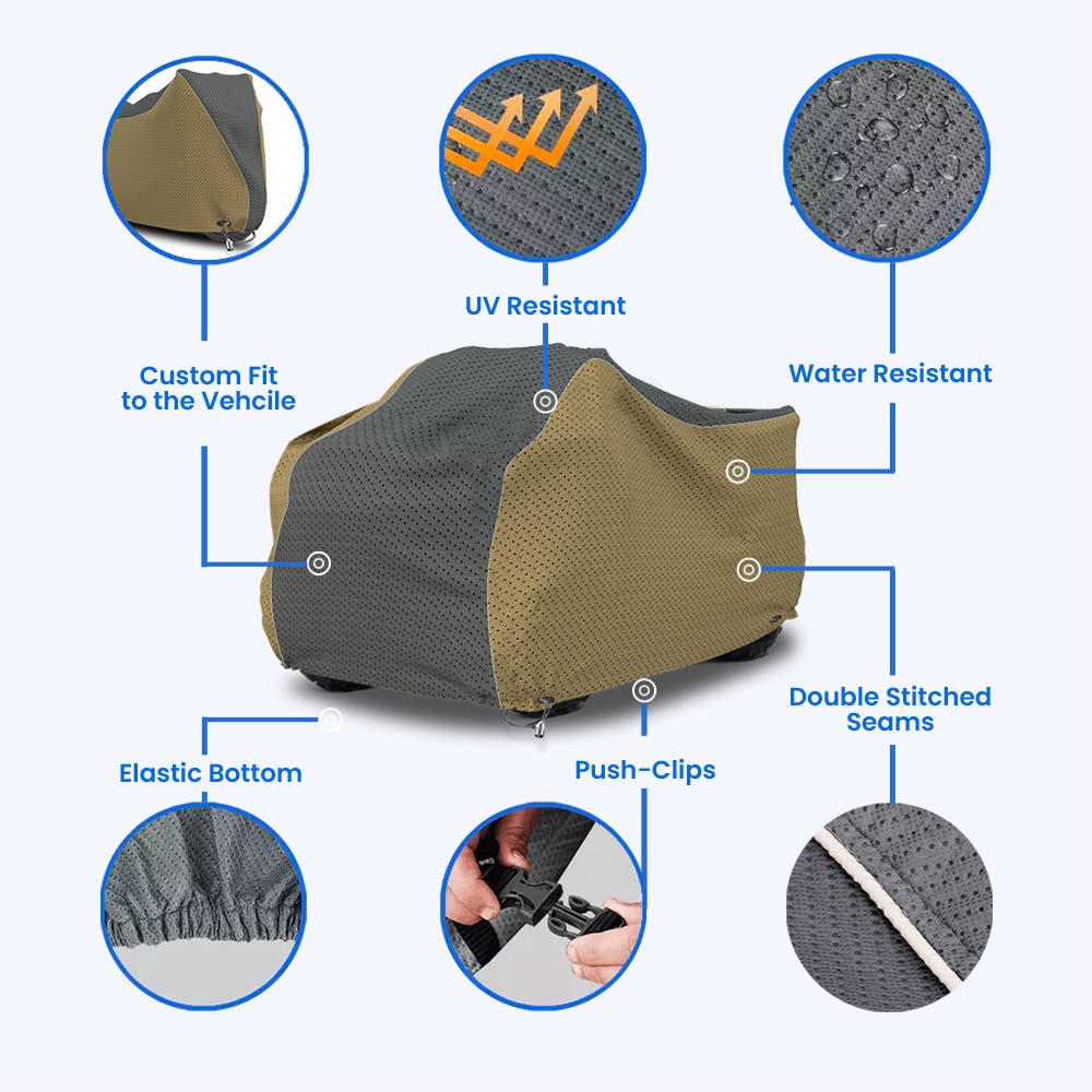 For ATV enthusiasts like you, your vehicle is more than just a machine - it's a symbol of freedom, a gateway to adventures, and an extension of your being. But in the middle of this excitement kicking in, there lies a desire to protect this two-wheeler, to safeguard it from the harsh weather elements. Here, our ATV Covers step in as guardians, wrapping your ATV with a snug fit and providing year-round protection. Ready-made covers don't offer sufficient defense because of its loose fit. Crafted with precision and all-weather protection, our custom designed covers become a shield for your ATV Motorbike.
