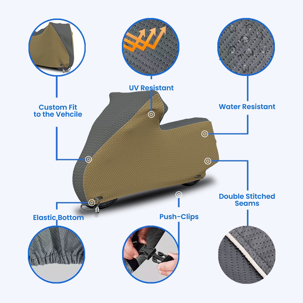 By allowing air to pass through, our covers prevent excessive heat from building up. As a result, the motorcycle's paint and interior components are prevented from being damaged by trapped heat because they facilitate the easy release of heat.