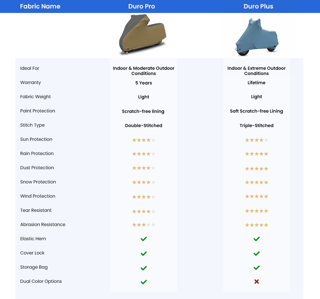 Our made-to-order covers are available with premium double-stitched seams. The double stitch seams not only ensure a great fit with full coverage, but also enhace the durability for long-lasting protection.